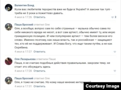 В официальной группе фестиваля "Вконтакте" люди неоднозначно расценили такой запрет. Есть те, кто считает, что не стоит смешивать искусство с политикой. Но есть и те, кто положительно отнеслись к решению власти запрещать въезд артистам, "которые поддерживают террористов".