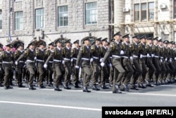 Четыре с половиной тысячи военнослужащих, в том числе ветераны и участники боевых действий в Донбассе, прошли маршем по Крещатику от Бессарабской до Европейской площади. Среди знаменосцев выделялась группа в новой церемониальной форме с боевыми флагами действовавшей сто лет назад армии Украинской Народной Республики.