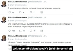 В ответ на свою реплику Ройзман получил от Поклонской целую отповедь в семи (!) твитах: