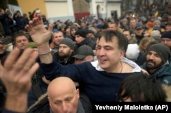 Поздно вечером во вторник экс-президент Грузии Михеил Саакашвили, освобожденный сторонниками из машины СБУ, на которой его должны были отвезти в Киевский суд, дал интервью грузинской оппозиционной телекомпании "Рустави-2". Прямое включение было организовано из палатки, стоящей недалеко от проходящего там же митинга.