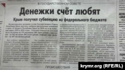 «Крымская правда» в статье под заголовком «Денежки счет любят» рассказывает о получении Крымом субвенции из бюджета соседней России. По информации издания, депутаты подконтрольного Москве крымского парламента одобрили изменения в закон о бюджете. Плановые показатели доходной части увеличены на 255 миллионов 300 тысяч рублей, а расходной ‒ на 942 миллиона 300 тысяч рублей. Дефицит тоже увеличен ‒ на 687 миллионов рублей. Как сообщил спикер российского парламента Крыма Владимир Константинов, изменение бюджетных показателей связано с поступлением субвенций из федерального бюджета.