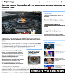Сайт «Украина.ру» пишет: «Украинская власть заплатит в твердой валюте за акцию по осквернению Могилы неизвестного солдата в Парке славы в Киеве». А «Вестри.ру» констатирует: «Четыре тысячи евро получит киевлянка за жарку яичницы на Вечном огне на могиле Неизвестного солдата в центре украинской столицы. Такое решение принял Европейский суд по правам человека».