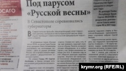 «Крымская газета» в материале «Под парусом «русской весны» рассказывает о прошедшей в Севастополе регате в честь так называемой «крымской весны». По информации издания, в гонках на призы вице-адмирала Олега Белавенцева, участвовали как начинающие яхтсмены, так и профессионалы мирового уровня.По словам подконтрольного Москве главы Крыма Сергея Аксенова, в Крыму есть все условия для развития яхтенного спорта: «Молодежь сегодня идет заниматься парусным спортом. Условия все здесь есть. И где еще развивать парусный спорт, если не в Крыму. Понятно, не хватает сегодня оборудования, но в любом случае у нас профессиональная команда уже есть». Для участия в регате съехались известные крымские випы и политики из регионов соседней России, в том числе губернаторы. Победу одержал экипаж, который готовил Белавенцев.