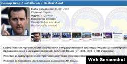 Президент Сирии Башар аль-Асад попал в базу украинского центра «Миротворец» – после признания, что в прошлом году его дети отдыхали в аннексированном Россией Крыму. В этот список вносят фамилии тех, кто, по мнению центра, угрожает национальной безопасности или территориальной целостности Украины.