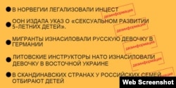 На прошлой неделе подобная дезинформация была опубликована в Грузии. В материалах утверждалось, что в Норвегии легализовали инцест, и что ООН выпустила новый указ о «сексуальном развитии пятилетних детей».