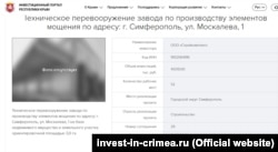 Об инвесторе, деятельность которого поручил расследовать Аксенов, Крым.Реалии уже писали. В 2015 году по решению крымского Совета министров 3 гектара территории «Крымжелезобетона» по улице Москалева, 1 отдали в аренду на 19 лет симферопольскому ООО «Стройкомплект». Компания обязалась «провести техническое перевооружение завода» и вложить в проект 45 миллионов рублей. Информацию об этом можно найти в реестре инвестпроектов Крыма.