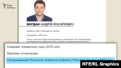 Когда журналисты решили ознакомиться с полным трудовым путем Андрея Богдана до назначения в ОП, оказалось, что его официальной биографии в открытых источниках нет. Лишь на третий запрос Офис президента направил ее «Схемам». После чего ее, наконец-то, опубликовали и на официальном сайте президента Зеленского.