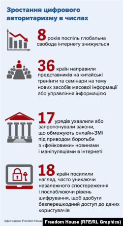 «Украина стремилась защитить свободу интернета на фоне конфликта с поддерживаемыми Россией сепаратистами и информационной войны с Кремлем», ‒ говорится в отчете.