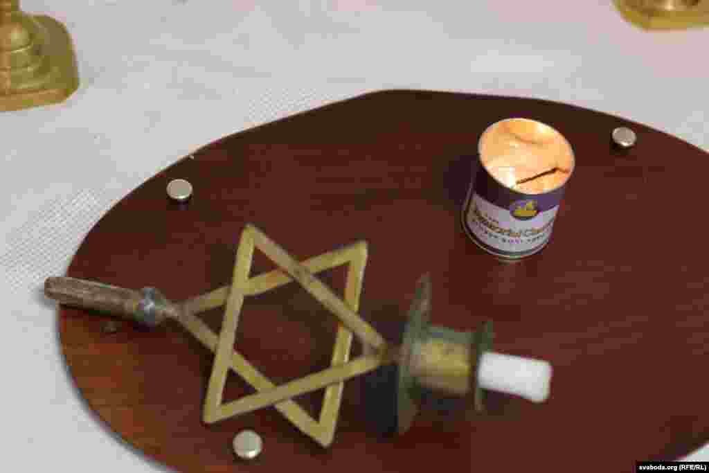 Поминальная свеча с надписью: «Шалом» (на иврите это слово означает «мир»)