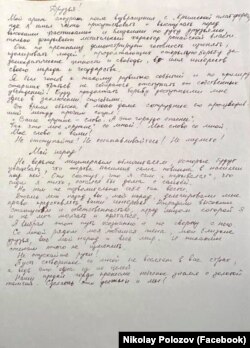 Заявление крымскотатарского активиста, политика и журналиста Наримана Джеляла, арестованного в Крыму, опубликовал 11 сентября адвокат Николай Полозов на своей странице в Фейсбуке.