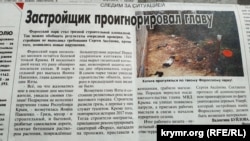 «Крымская правда» в статье «Застройщик проигнорировал главу» рассказывает о сложной ситуации в Форосском парке, где ведутся строительные работы. «Форосский парк несколько месяцев остается болевой точкой Крыма. И несколько дней назад эту рану обширно посыпали солью. В парк в седьмой раз выехала Янина Павленко, глава администрации Ялты», – пишет газета. «Все, на что жаловались мне в последние дни местные жители, увидела своими глазами! Подрядчик не исполнил поручения главы Республики Крым, – возмутилась подконтрольная России мэр Ялты. – Грязь, мусор – и строительный, и бытовой, разбитые самосвалом дороги, залитые бетонным раствором растения, поврежденные большегрузами деревья! Перед старинным каптажем 1888 года вырыт гигантский котлован, инженерной защиты нет, на дне образовалось озеро!» Составлен протокол об административном правонарушении по факту уничтожения деревьев. Ущерб, который застройщик нанес Форосскому парку, должен быть возмещен материально.