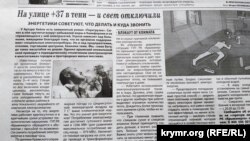 «Крымские известия» пишут о том, что крымский аномальный зной приводит к периодическому отключению электроэнергии в многоэтажках городов и пригородных жилых массивах. «У кого-то электричество гасло на минуту и восстанавливалось. Кто-то сидел в раскаленных комнатах 3-4 часа, – отмечает издание. – Специалисты говорят, в пекло все включили кондиционеры, вентиляторы, стали больше тянуть из сети холодильники. Вот и попали целые районы в зону локального аварийного отключения электроэнергии. Несмотря на то, что энергетики работают круглосуточно и в кратчайшие сроки устраняют технологические нарушения, «Крымэнерго» обращается к абонентам с просьбой по возможности снизить потребление электроэнергии в пиковые часы».