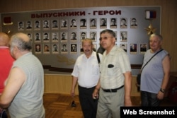 На этом фото слета выпускников ДВОКУ, сделанном 27 июля 2014 года, хорошо видно, что симметрию стенда нарушили две новые фотографии – Маслова и Попова (их несложно опознать даже в таком плохом качестве, фотографий этих Героев России в открытых источниках более чем достаточно):