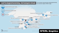 Крым.Реалии продолжают следить за географией вододефицита, в условиях которого живут крымчане с прошлого года. На полуострове стремительно мелеют водохранилища, питающие крупные города. Как следствие – их жители испытывают проблемы с доступом к качественной пресной воде. Повлияли ли на состояние крымских водохранилищ зимние осадки, на которые надеялись многие, рассказываем и показываем в нашем материале.