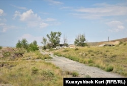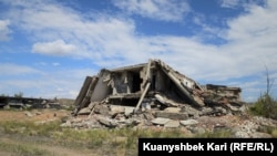 Руины городка «Г» (условное название городка в советское время) у горы Дегелен. В советские годы этот городок, подчинявшийся непосредственно Москве, находился на специальном обеспечении. Некоторые жители окрестных совхозов получали специальное разрешение и покупали здесь продукты питания. В городке быстро находили дефицитные запчасти для техники.
