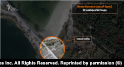 Перед отступлением из правобережной части Херсонской области российские войска вырыли окопы и соорудили укрепления для военной техники на левом берегу Днепра – об этом свидетельствуют спутниковые снимки, изученные Радио Свобода и расследовательским проектом "Схемы". Фотографии со спутника также подтверждают, что армия РФ взорвала несколько пролетов моста, ведущего к дамбе Каховской ГЭС.
