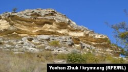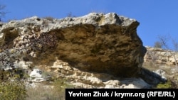 При выветривании более мягкие породы разрушаются первыми, более твердые держатся. В результате образуются козырьки. Длина этого – шесть-семь метров. Однажды и он обрушится под собственной тяжестью или во время землетрясения. Таких отколовшихся обломков на склонах много.