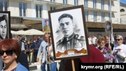 Тут сделаем отступление в скобках: прежние «бессмертные полки» проходили в Крыму тоже по указке сверху. Редко кто найдет портрет деда, погибшего во Второй мировой войне. А для большинства и не деда, а прадеда. И на помощь пришла власть: раздавали портреты чужих. Слышал, в других городах после шествия такие портреты находили в мусорных баках. Но не у нас! Потому что через год же новое шествие, зачем же зря расходовать деньги на агитацию и пропаганду? А потому портреты «чужих» сдавали организаторам митинга.