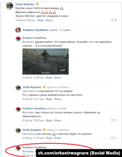 Если о родственниках перечисленных ранее ничего не известно, то другая картина в случае Евгения Янухина, родившегося в городе Антрацит Луганской области. Янухин жил в последние годы с семьей в Ялте. На могиле указана дата смерти 11 декабря 2022 года. Мать наемника, живущая в Крыму, на своей странице в соцсети ВКонтакте всячески поддерживала деятельность ЧВК «Вагнер». Но о смерти сына узнала только в конце апреля 2023 года.