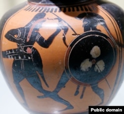 Скифский лучник и греческий гоплит, родосская ваза, 510-е гг. до н.э.