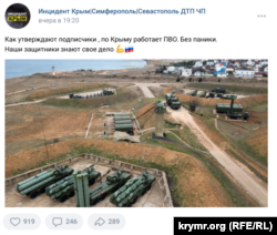 Также обсуждение развернулось в сообществе «Инцидент Крым|Симферополь|Севастополь ДТП ЧП», но 90% комментариев были взаимными оскорблениями членов группы или причитаниями, почему рассказывают о работе ПВО.
