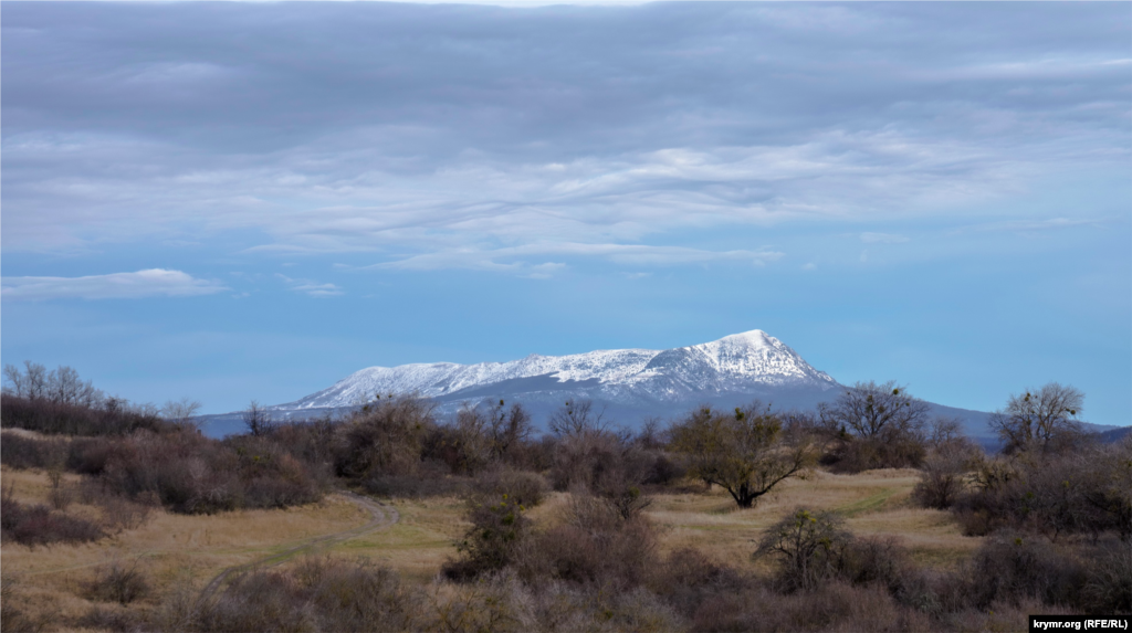 Вид на заснеженную гору Чатыр-Даг в урочище Бахчисарайского района | Крымское фото дня