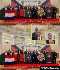 Еще одно фото, на котором несколько лиц участников конференции заблюрены, опубликовал все тот же сайт венгерского "Молодежного движения шестидесяти четырех округов" и еще несколько организаций, участвовавших в конференции. При этом в телеграм-канале испанских фалангистов был опубликован точно такой же снимок, но без блюра (позже он было удалено, но сохранилось в репостах).