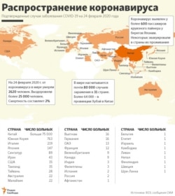 Основным очагом эпидемии по-прежнему остается Китай, в первую очередь провинция Хубэй, откуда началось распространение Covid-19. Этот вирус вызывает тяжелое воспаление легких, которое в некоторых случаях – прежде всего у пожилых людей и тех, чей организм ослаблен в результате других острых или хронических заболеваний, – заканчивается смертью. В Китае, по последним данным, заразились около 77 тысяч человек, умерли почти 2600 заболевших, более 20 тысяч – уже выздоровели.