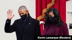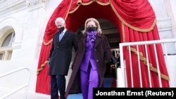 Вместе с Байденом к присяге на церемонии инаугурации в Вашингтоне была приведена вице-президент Камала Харрис.