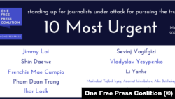 В коалиции подчеркнули, что эти десять случаев свидетельствуют об усилиях правительств по криминализации журналистики, подавлению СМИ и сокрытию информации от общественности.