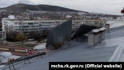 В Феодосии сильный ветер 26 февраля сорвал крышу на шестиэтажном доме, сообщает российское Министерство чрезвычайных ситуаций Крыма.