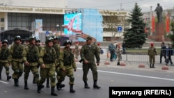 По главной улице города – проспекту Кирова – прошли парадные «коробки» военнослужащих местного гарнизона, полиции, Росгвардии, молодежного движения «Юнармия», кадетских классов местных средних школ, сообщает корреспондент Крым.Реалии.