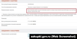 Закупка осуществлялась «вследствие аварии, иных чрезвычайных ситуаций природного или техногенного характера, непреодолимой силы, при необходимости срочного медицинского вмешательства, а также для предотвращения угрозы возникновения указанных ситуаций», говорится на российском портале госзакупок.