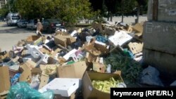 В центральной части Севастополя с рынка, прилегающего к кинотеатру «Россия», несколько дней не вывозят мусор. В самом кинотеатре российские власти Севастополя сейчас проводят фестиваль документального военного кино «Победили вместе», сообщает корреспондент Крым.Реалии.
