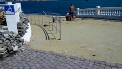 На мысе Хрустальном в центре Севастополя штормом сорвало плиточное покрытие, сообщает корреспондент Крым.Реалии.