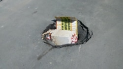 Уточняется, что сначала провал был небольшим, потом стал увеличиваться. По мере расширения дыры в асфальте местные жители стали засовывать в отверстие картонные объявления, обломки ящиков и разные предметы.