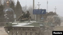 На севере Крыма в Армянске и Красноперекопске замечено больше количество российской военной техники с маркировкой «Z», которую Россия перебрасывает на материковую часть Украины. Видео и фото движения техники публикует агентство Reuters.