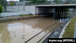 В Севастополе 7 июня ливень затопил железнодорожные пути. Как сообщает корреспондент Крым.Реалии, территория городского автовокзала покрыта слоем грязи.