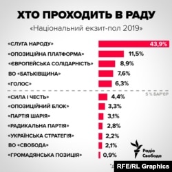 Согласно данным опроса, поведенного на выходе из участков, в Верховную Раду девятого созыва проходят пять партий:
