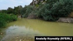 При этом заметно, что вода в устье реки Судак (Суук-Су) стала мутной и имеет едкий запах.