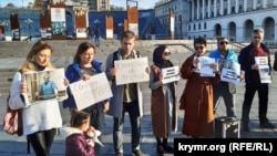 В Киеве на Майдане Независимости 1 октября прошла акция в поддержку гражданского журналиста, блогера из Крыма Наримана Мемедеминова, которого российские правоохранители обвиняют в публичных призывах к терроризму.