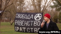 Как сообщает корреспондент Крым.Реалии, митинг проходил в детском парке возле проспекта генерала Острякова. В нем приняли участие менее двух десятков левых активистов из Севастополя и других городов Крыма, придерживающихся анархистских и марксистских взглядов.
