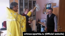 Руководитель паломнического отдела Симферопольской и Крымской епархии УПЦ МП протоиерей Алексий Тушев освятил здание российского Министерства курортов и туризма Крыма. Об этом сообщила пресс-служба Крымской епархии.