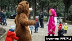 После чего началась музыкальная интерактивная игра с ростовыми куклами – Машей и медведями. В конце праздника устроили фейерверк и всех детей накормили сладкой кашей, которую приготовили в полевой кухне, предоставленной управлением МЧС России в Крыму.