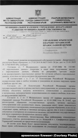 Подконтрольный России Арбитражный суд Крыма 28 июня 2019 года обязал передать в пользование российского Минимущества Крыма помещение собора. Архиепископ Крымской епархии Православной церкви Украины Климент сообщил, что будет обжаловать это решение.