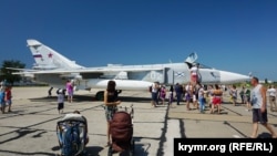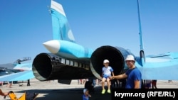 Россияне отмечают в Новофедоровке, что в Сакском районе Крыма, день морской авиации. С этой целью устроили для местных жителей показ техники здешнего авиаполка, а также прилетевший из Североморска экипаж крейсера «Адмирал Кузнецов», сообщает корреспондент Крым.Реалии.