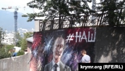 В городах Крыма группа художников расписывает стены портретами Путина. Первая их работа появилась в Симферополе, после чего художники перебрались в Ялту, – сообщает корреспондент Крым.Реалии.