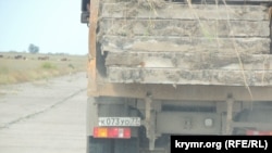 Грузовые автомобили с бетонными плитами характерной толщины в пятницу 21 августа были замечены возле проходной Керченского рыбного порта, в очереди на паром, следующий в Российскую Федерацию.