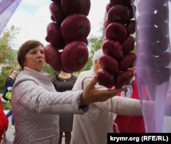 Гости фестиваля также рассчитывали приобрести здесь обещанный «эксклюзивный» ялтинский лук. Но выбор оказался скудным – свою продукцию представил лишь один местный житель Иван Марченко. Он рассказал Крым. Реалии, что большинство его односельчан свой лук, который дозревает вначале августа, уже давно реализовали. По его словам, нынешний год крайне неудачный, поскольку урожай серьезно пострадал от сильного града. Мужчина признался, что в этом году собрали лука в три раза меньше, чем в прошлом году.