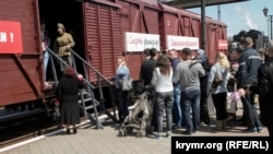 В рамках празднования Дня освобождения города от немецко-фашистских захватчиков в Керчь прибыл «Поезд Победы». Как сообщает корреспондент Крым.Реалии, попасть на железнодорожный вокзал Керчи в этот день было непросто. Власти закрыли движение троллейбусов в этом направлении, а маршрутки шли переполненные.